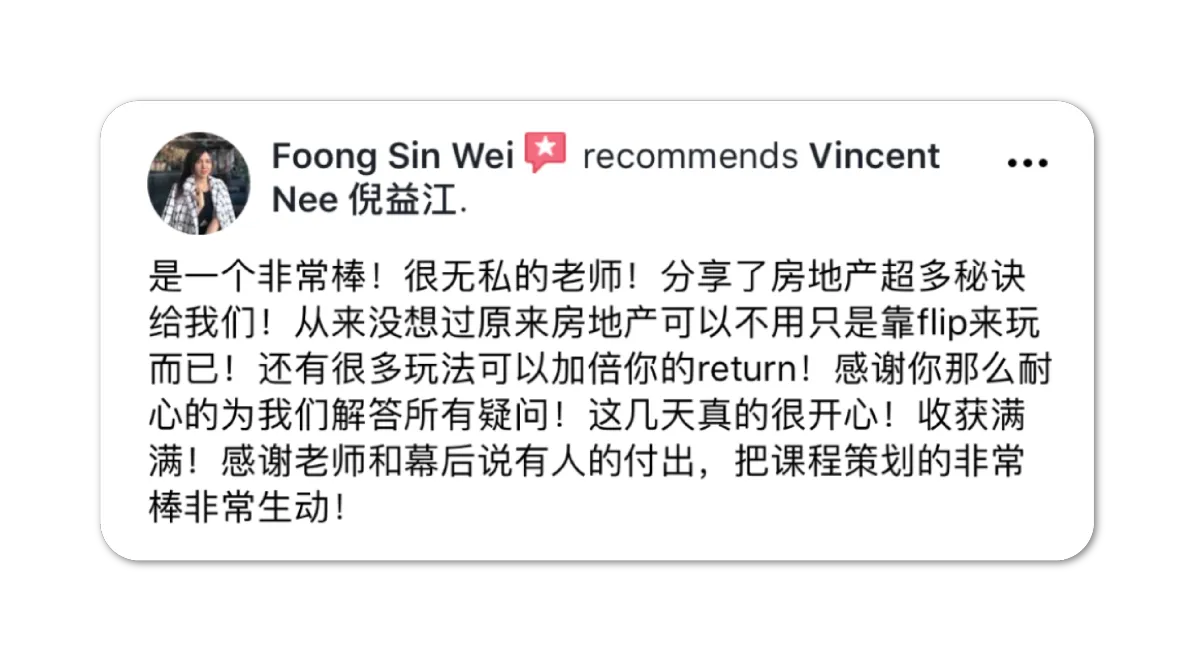 很多传统投资者觉得现在的租金已经不够Cover Installment了,可是我们的学员学会如何把房产差异化,用价值来获取
